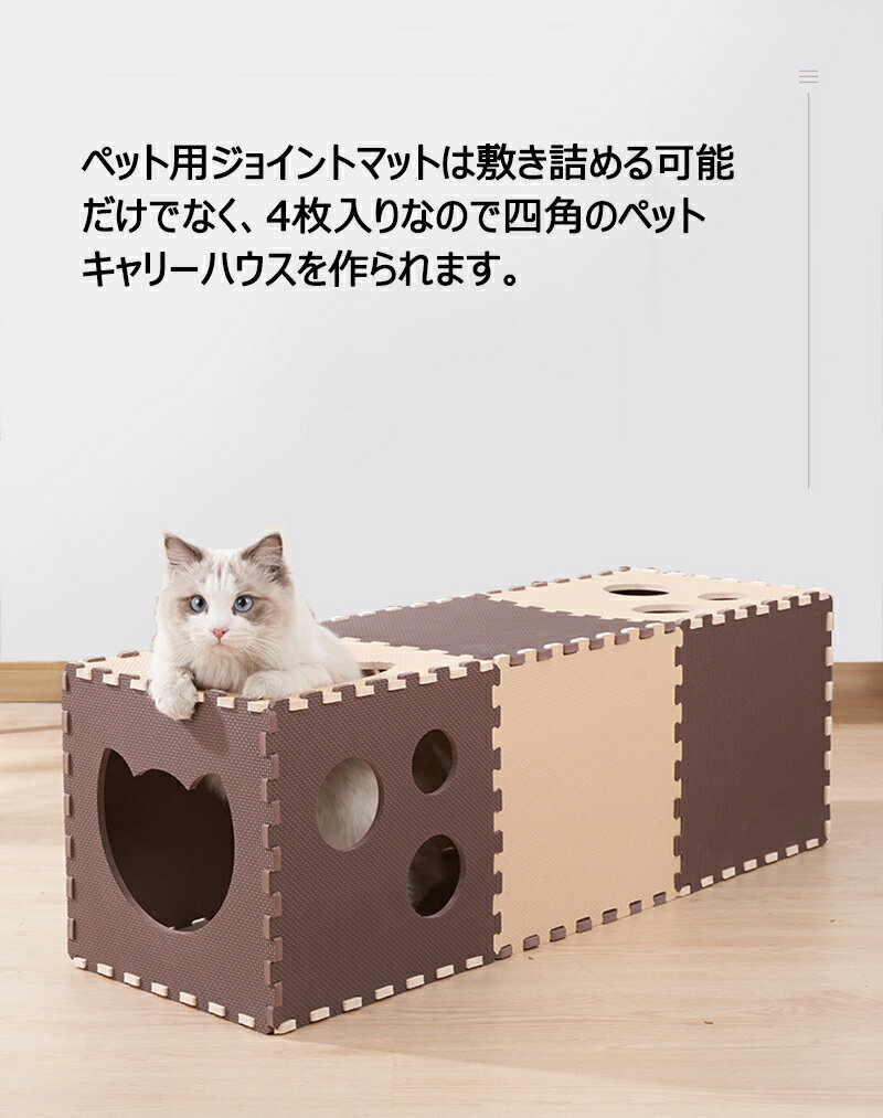【4枚入り】ペットマット 滑らない 30cm*30cm ジョイントマット ジョイント マット ペット用 カーペット 撥水 滑り防止 ズレない 床 ペット カーペット 犬 カーペット 床保護マット ペットハウス ペットキャリアー 多機能 2色 通気性良い 衝撃吸収 収納便利 送料無料