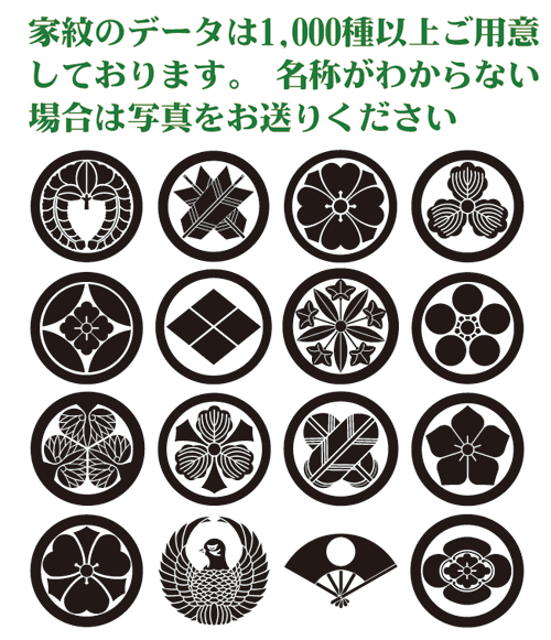 家紋の名称がわからない場合は写真をお送りください ご注文後、24時間以内(土日・祝日は休み明け)に当店よりデザイン確認メールをお送りします お客様にご確認を頂いてから仕上げ作業に掛からせて頂きます 包装・オリジナルメッセージのし紙は無料です! ★